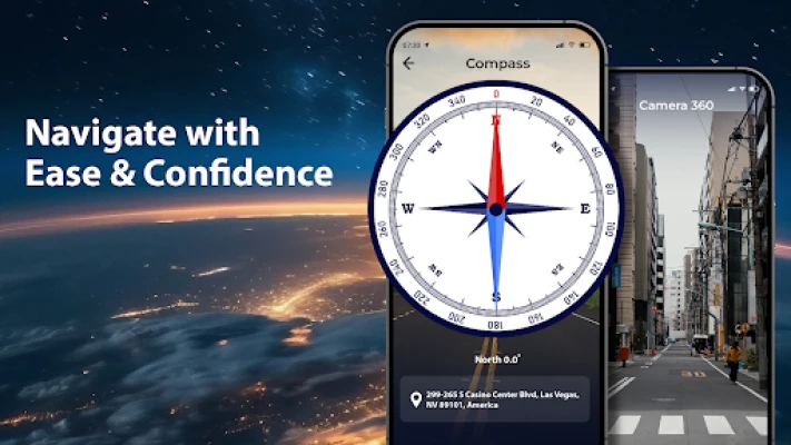 **Earth Live Cam & Satellite Map** transcende simpla vizualizare, transformându-se într-un instrument cartografic inteligent și puternic. Funcția de căutare avansată vă permite să descoperiți instantaneu puncte de interes la nivel global, fie că sunteți în căutarea unui restaurant, a unei cafenele primitoare, a unui hotel, a unui spa relaxant, a unui bancomat sau a unei stații de alimentare. Puteți salva cu ușurință locurile preferate în „Locurile Mele" pentru acces rapid, chiar și offline, odată sincronizate. În plus, busola digitală precisă și navigatorul GPS integrate vă oferă direcția, distanța, altitudinea și viteza, funcționând impecabil atât online, cât și offline, eliminând necesitatea mai multor aplicații separate.