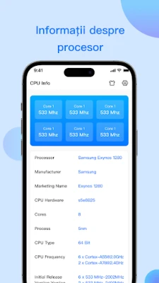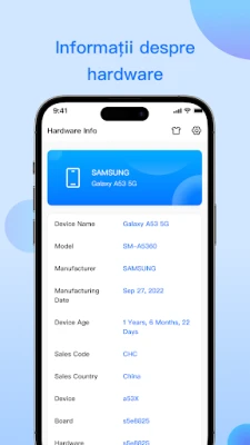 Descoperiți detalii esențiale despre hardware-ul și software-ul telefonului dumneavoastră. Oferind o analiză aprofundată, aplicația prezintă specificații complete ale dispozitivului, de la procesor la sistemul de operare. Obțineți o imagine clară a performanței și componentelor interne.