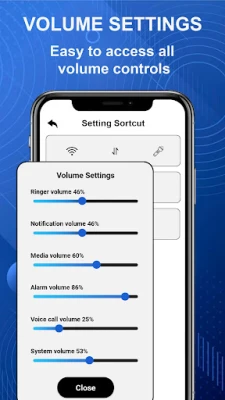 Eficiența și comoditatea sunt acum la o singură atingere distanță. Gestionați funcțiile cheie ale telefonului cu o serie de comenzi rapide și practice: activați sau dezactivați fără efort Wi-Fi-ul, datele mobile, Bluetooth-ul, lanterna, GPS-ul, rotația ecranului și modul avion. În plus, ajustați luminozitatea display-ului și nivelul volumului pentru a adapta experiența la preferințele și nevoile dumneavoastră imediate, asigurând o utilizare fluidă în orice context.