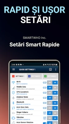 Setări rapide inteligente redefinește gestionarea setărilor Android. Descoperiți o soluție premium, intuitivă și eficientă, care vă oferă control total. Simplificați-vă experiența mobilă cu acest instrument esențial, proiectat pentru performanță superioară și acces rapid la funcțiile cheie ale telefonului.