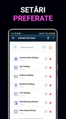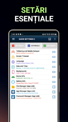 De peste un deceniu, am fost partenerul de încredere al milioanelor de utilizatori Android, redefinind standardul de gestionare a setărilor. Uităm de labirintul meniurilor complexe; soluția noastră vă oferă control intuitiv și instantaneu asupra funcțiilor esențiale ale dispozitivului, totul la o singură atingere. Cu o interfață de utilizator rafinată, validată de o bază vastă de utilizatori, și un motor proprietar ce asigură reacții în timp real, transformăm gestionarea setărilor într-o experiență inteligentă, eficientă și lipsită de efort, oferind putere la vârful degetelor.