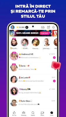 Cu Tango, poți explora o multitudine de transmisiuni video live, de la spectacole captivante până la discuții interactive, toate create de o rețea diversă de artiști și personalități. Intră în chat-uri video în timp real pentru a interacționa direct cu creatorii tăi preferați sau pentru a împărtăși propriile tale momente speciale cu publicul. Indiferent dacă îți dorești să susții talente emergente, să îți faci prieteni de durată sau să te alături unor conversații pline de viață, Tango facilitează formarea de legături puternice prin conținut video autentic și captivant. Este o invitație deschisă la a participa la noua eră a socializării online.
